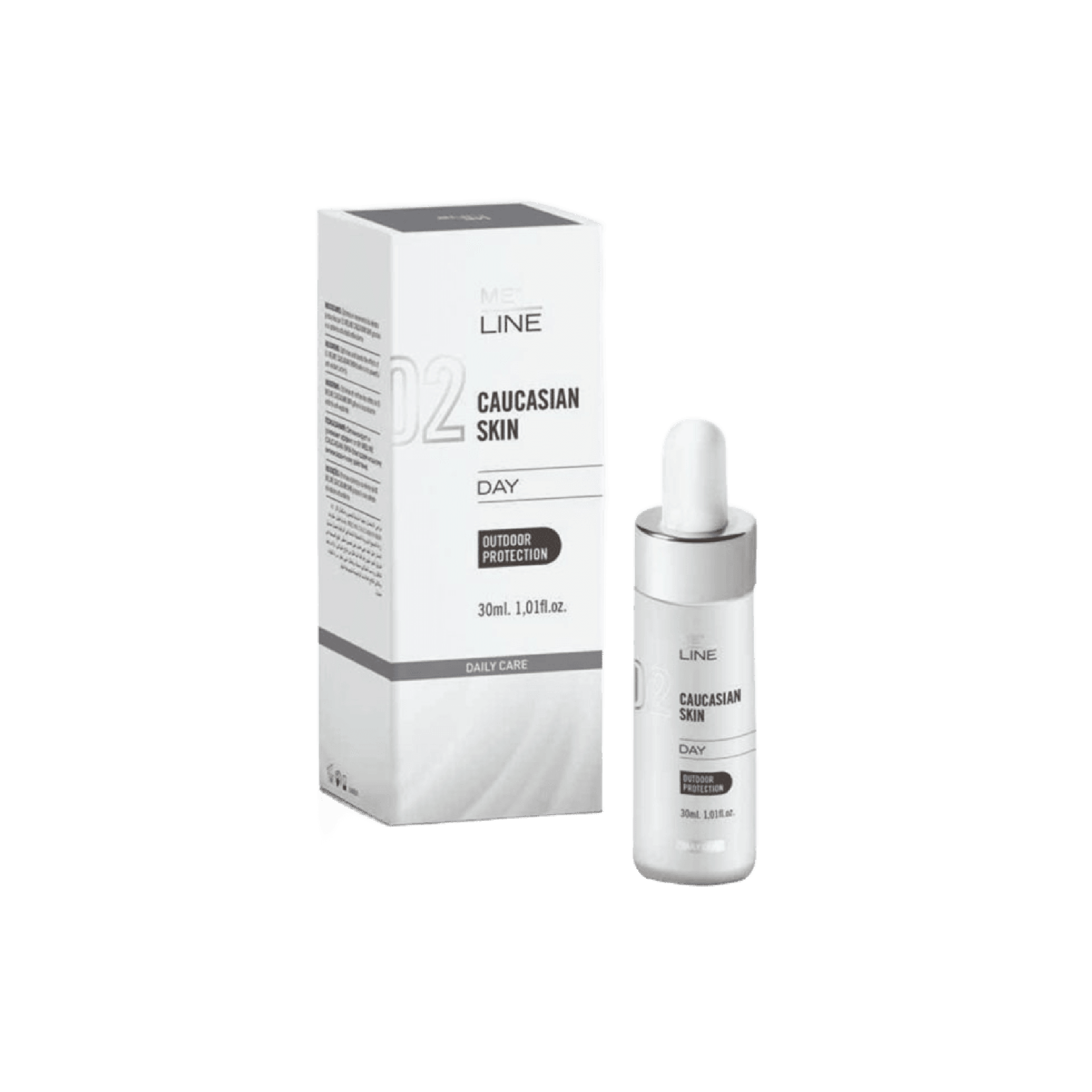 Me Line Caucasian Skin Day 0 02 10ml: is a concentrated depigmenting serum for phototypes I-IV. It improves and delays skin pigmentation, reducing melanin deposits. Contains Mandelic Acid, Lactobionic Acid, Phytic Acid, Kojic Acid, Glutathione, Tranexamic Acid, Copper Tripeptide, and Chameleon White. Apply on pigmented areas after cleansing for at least 90 days.