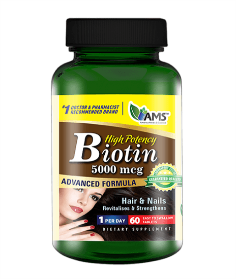 Enhance your energy and beauty with AMS Biotin! Often called “the beauty nutrient” because of the nourishment it delivers for healthy hair and scalp, this member of the B-vitamin complex is a key cofactor of enzymes involved in fatty acid metabolism, helping to supply cells with energy. This product is a dietary supplement, not a medication.